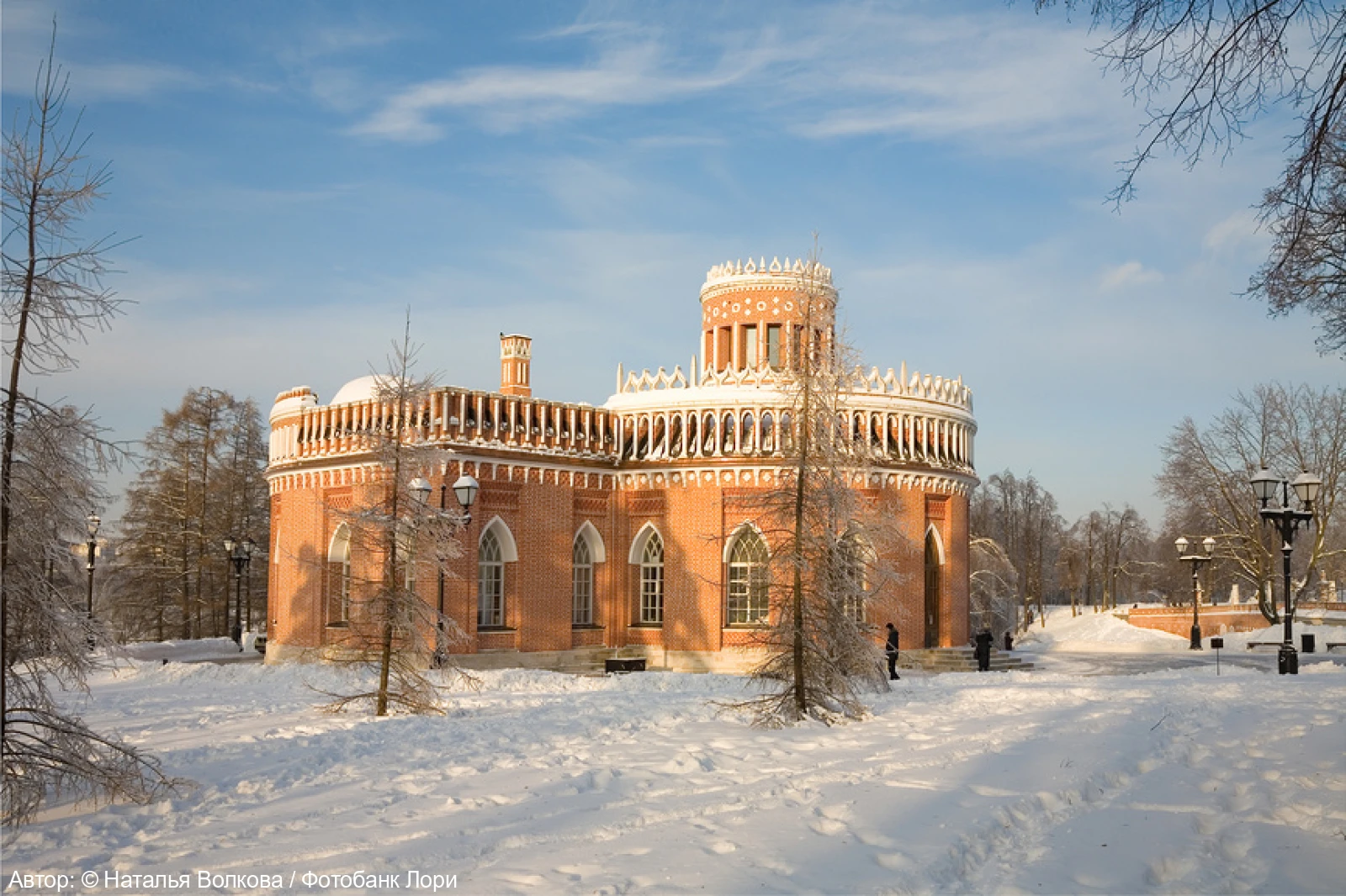 Пешеходная прогулка по великолепному комплексу музея-заповедника «Царицыно» напоминает путешествие в детскую сказку: волшебной красоты здания, живописные арки, могучие деревья, аккуратные мощеные дорожки и роскошные фонтаны окружают гуляющих.