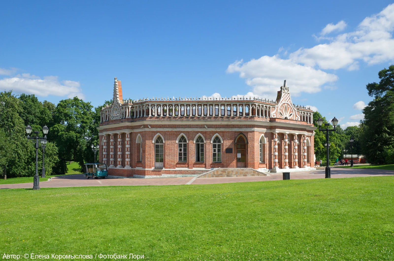 На экскурсии в Царицыно Вы увидите и другие здания комплекса, спроектированные архитектором Баженовым. Это элегантные Кавалерские корпуса, составляющие единый ансамбль, и стоящий несколько особняком Кухонный корпус, прозванный в XIX веке Хлебным домом. В обновленном Хлебном доме теперь проходят выставки, Вы побываете на одной из них.