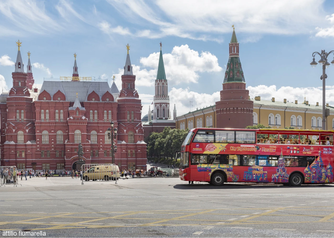 Экскурсионные автобусы курсируют по Москве таким образом, чтобы через большие панорамные окна Вы увидели как можно больше достопримечательностей исторического центра: центральную Тверскую улицу, великолепную Манежную площадь, Кремлевские стены и башни из красного кирпича, возрожденный храм Христа Спасителя.